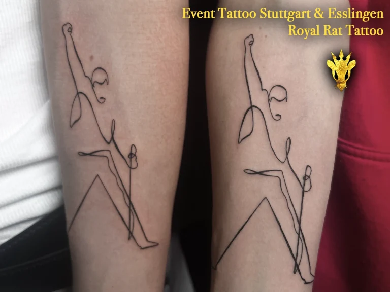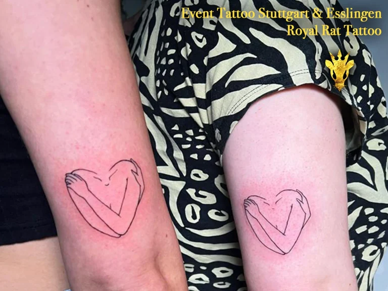 Ihr habt bereits eine Idee oder ein gemeinsames Symbol, das ihr verewigen möchtet? Gerne bereiten wir kleine Designs im Vorfeld für euch vor. Wenn ihr es lieber locker und spontan angehen möchtet, ist das auch möglich: Dank Internetzugang gestalten wir auch direkt vor Ort – flexibel, kreativ und ganz auf euch abgestimmt. So entstehen auch spontan kleine Tattoos mit großer Bedeutung.